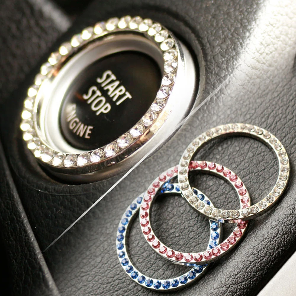 2Pcs Fashional Bling Car One-Key Engine Start Button Ignition Device Decorative Crystal Diamante Ring Sticker